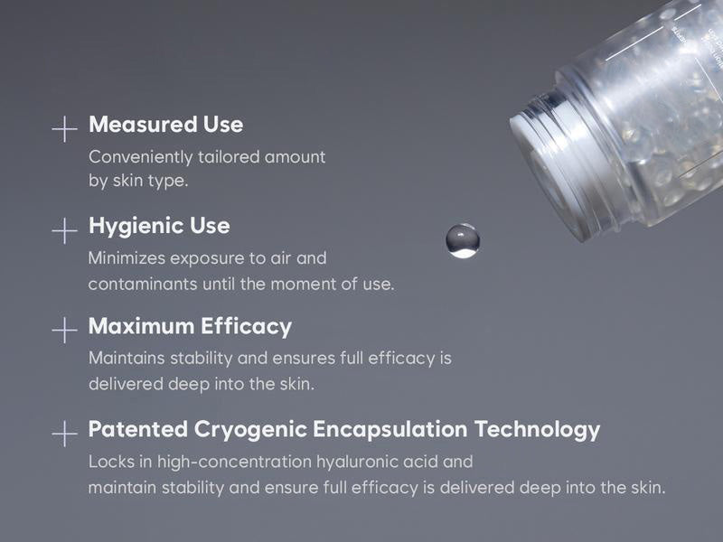 These innovative single-use capsules deliver concentrated hydration and barrier support through cryo-encapsulation technology. The low molecular formula penetrates deeply to relieve inner dryness while creating an ideal smooth base for daytime makeup or overnight recovery. With a smart dosage system adaptable to any skin type, wake up to calmer, glowing skin and enjoy lasting moisture that strengthens your skin's natural resilience day and night.