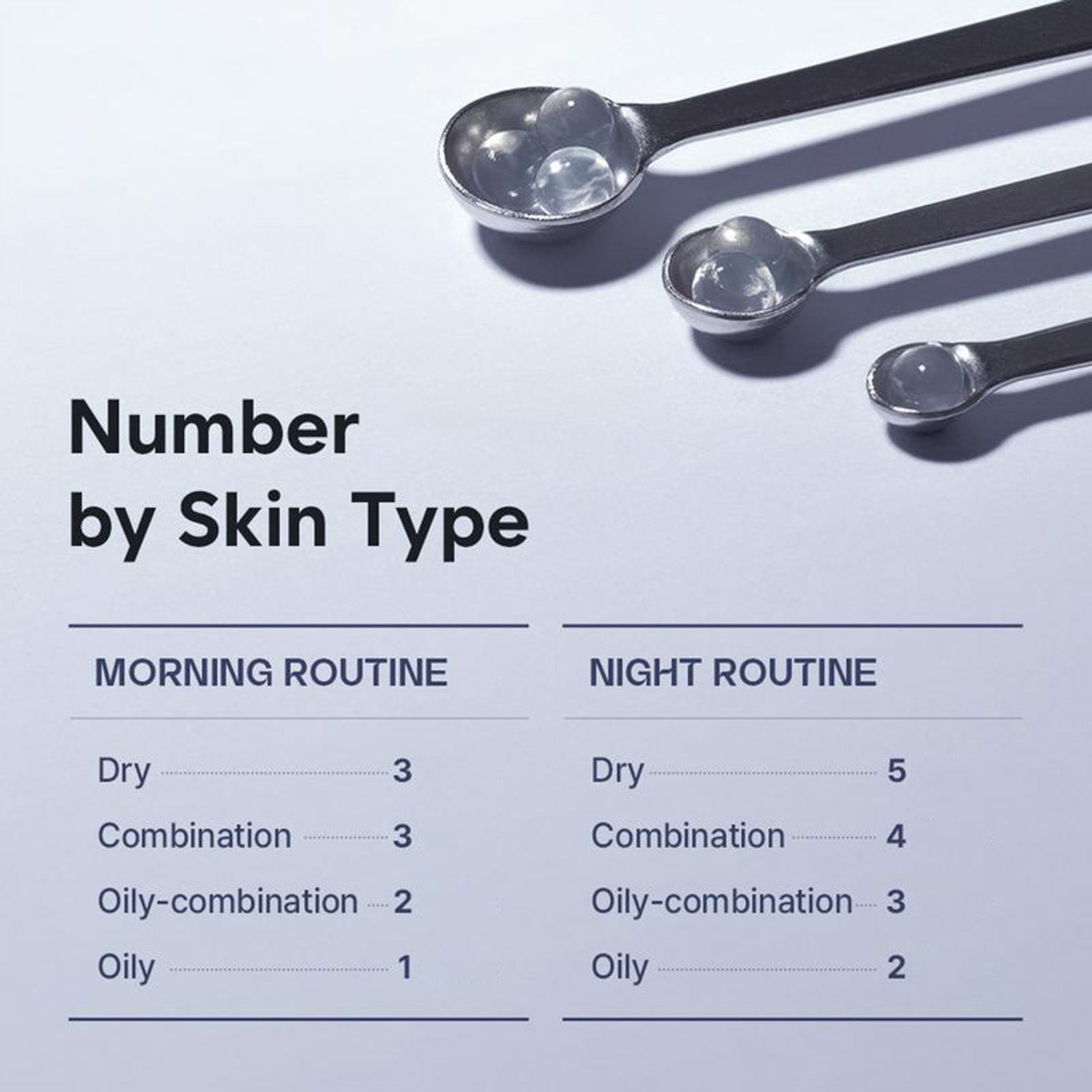 Meet your skin’s exact needs with precision-dosed Capsules tailored to your skin type. Whether your skin is dry, combination, or oily—simply follow the daily guide: